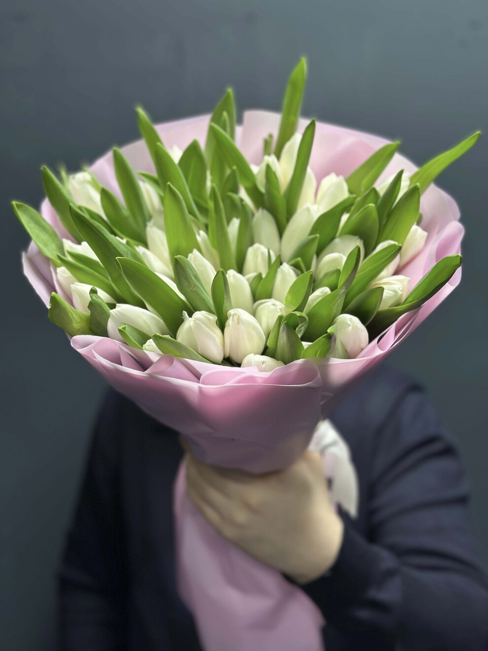 Букет из 49 белых тюльпанов